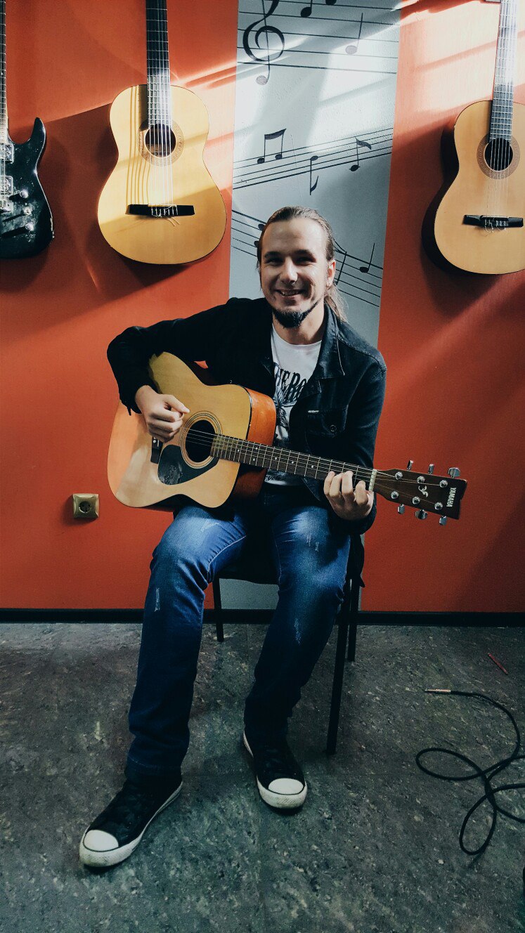 Мысли о поступлении в это место бегали с такой скоростью, что я уже сидел с гитарой на пробном занятии. Я почувствовал себя дома. Столько личностей... и учатся все, чему хотят. Просто зашёл и окунулся в ламповую атмосферу, где меня понимают и уважают мои вкусы. Мало того, так я за одно занятие в Школе рока научился большему, чем за год в другом месте. Преподователям -" Моё почтение". Такая выдержка при виде моей криворукости. Я бы сам себя убил.